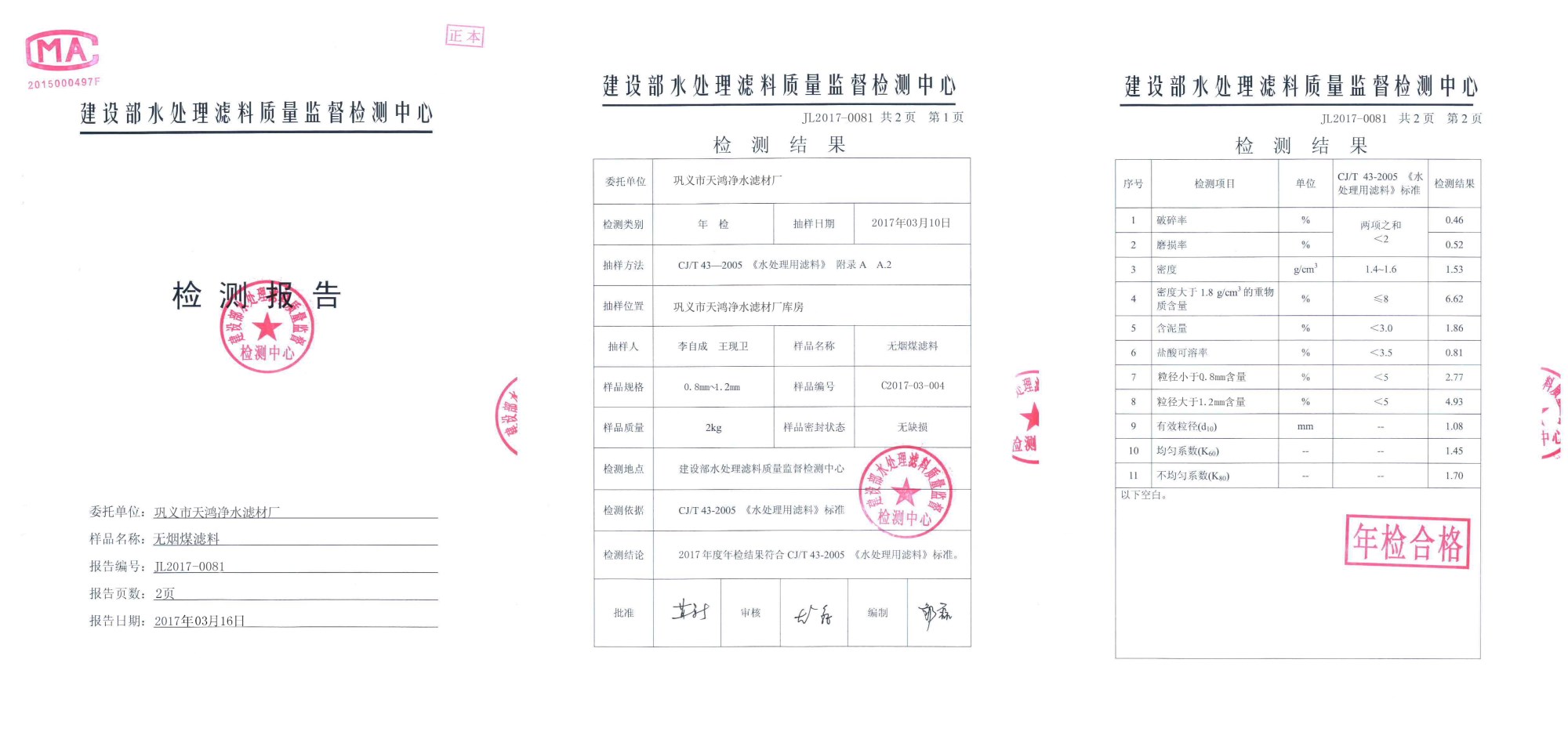 1:無煙煤濾料不含有毒有害物質,